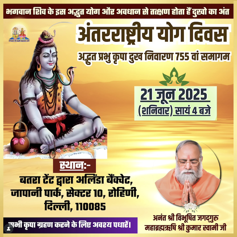 Prabhu Kripa Dukh Nivaran Samagam, where with the recitation of Maa Durga’s mantras, all sorrows come to an end. These mantras are provided by His Holiness Mahabrahmrishi Shree Kumar Swami Ji, whose selfless service has been recognized by everyone from the British parliament to American State Senates.